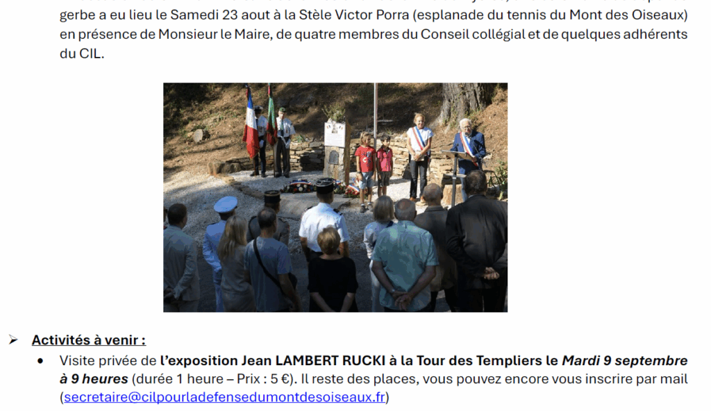 Un résident de notre belle colline a ouvert en quelques phrases la description de points d’Histoire et de faits remarquables du Mont des Oiseaux.